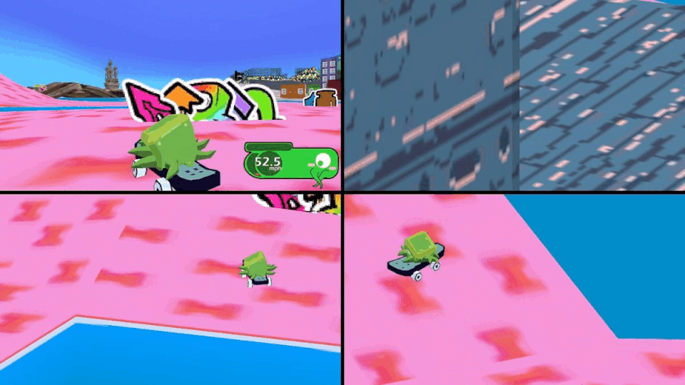 Pick your favorite Society of Play character & prop that we've strapped boosters to, and zip around the city! Developed with Unity DOTS/ECS, this game is designed to be played on the Society of Play arcade cabinet (meaning the PC controls are absolute gibberish, but is available to try out anyways).